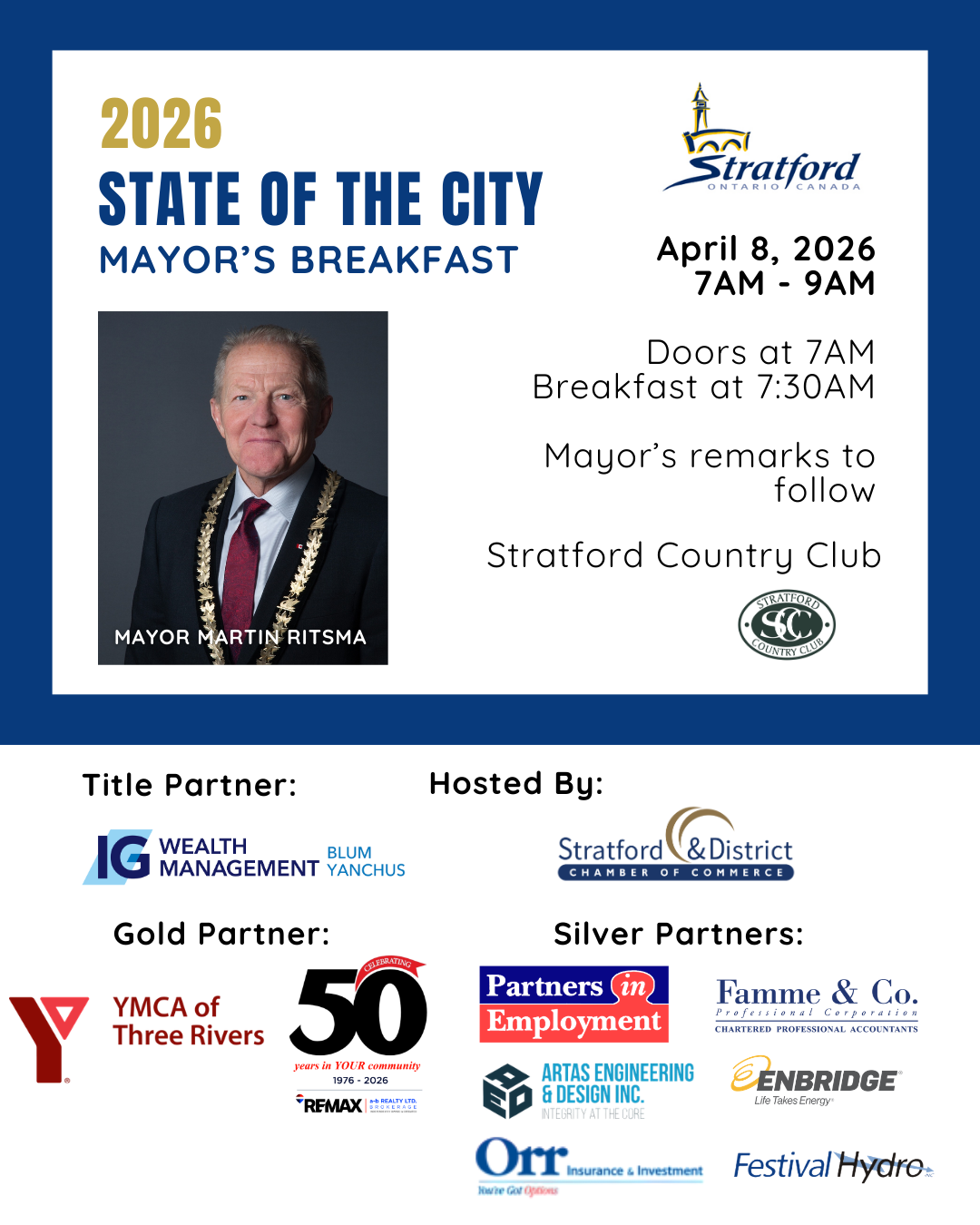 The Stratford & District Chamber of Commerce advocates and represents the business interests and issues in Stratford, St. Marys, Mitchell, and surrounding areas for all businesses large and small.